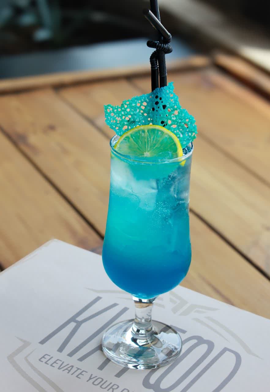 آب اناناس/سیروپ بلوکاراسائو/اکلیل خوراکی/لیمو/سودا