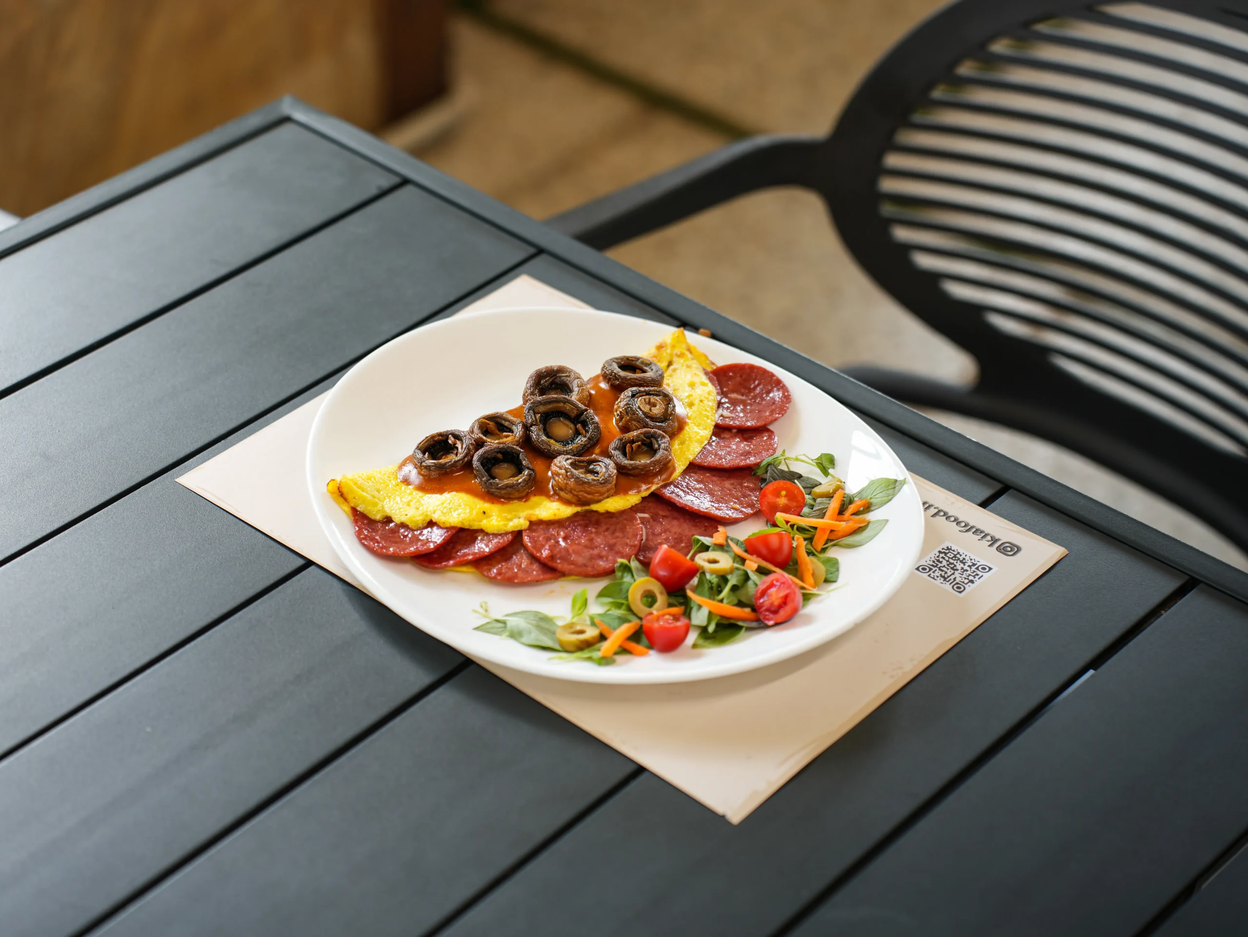 تخم مرغ/سس گوجه/سالاد صبحانه/ به همراه نان داغ